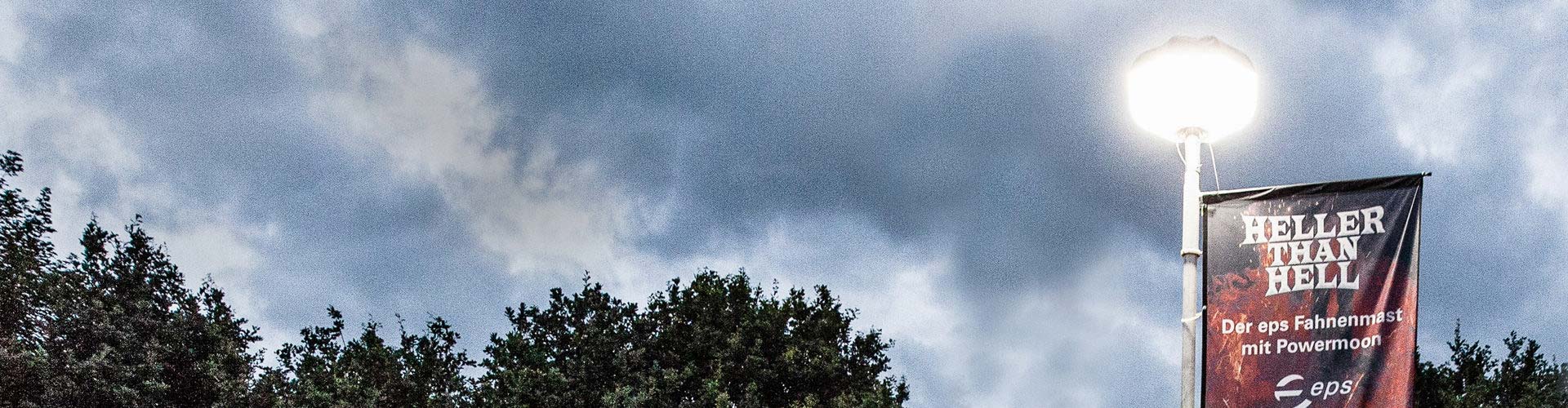 Our floodlight poles or flagpoles, equipped with balloon-like lights, can illuminate extensive event areas extensively and evenly. Our mobile lighting systems can be set up and taken down quickly, making them ideal for temporary events or construction sites.